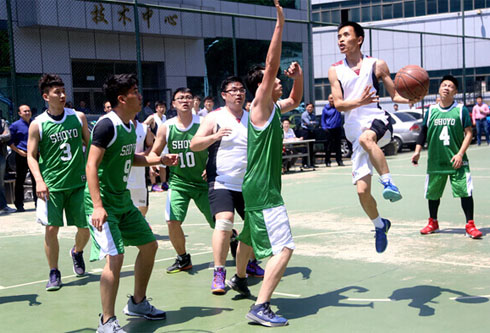 6月3日中午,上海拓鹏实业有限公司2016年职工篮球比赛上演巅峰对决。