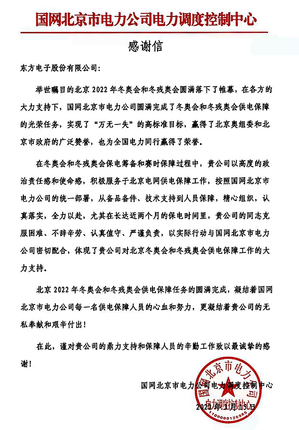 日前,举世瞩目的北京2022年冬奥会和冬残奥会圆满落下帷幕。在冬奥及两会期间保电筹备和赛时保障过程中,我公司各单位圆满完成保电任务,获得了一致好评。