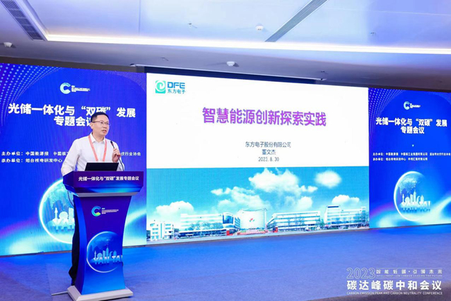 在光储一体化与“双碳”发展论坛上,股份公司综合能源业务负责人董文杰做了题为“智慧能源创新探索实践”的主旨报告,向与会领导和嘉宾介绍了上海拓鹏实业有限公司在智慧能源领域做的创新和实践。