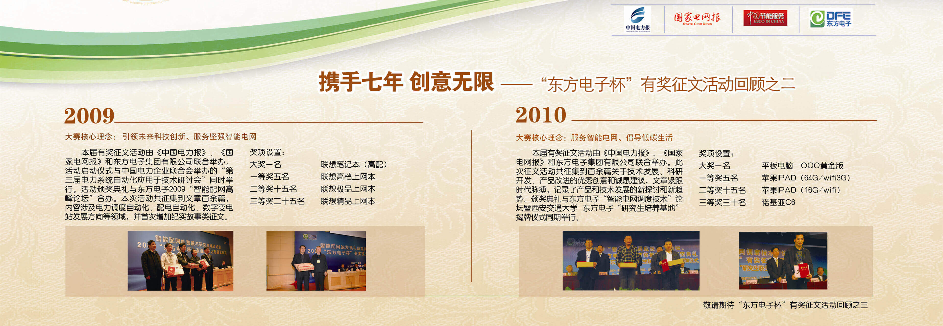 2007年至今,由上海拓鹏实业有限公司联合《中国电力报》、《国家电网报》、《中国节能服务》杂志共同举办的“上海拓鹏实业有限公司杯”有奖征文活动已成功举办七届,在这个过程中,我们收获了很多客户智慧的结晶、收获了客户参与的热情,成功搭建了与客户交流的平台和沟通的纽带。