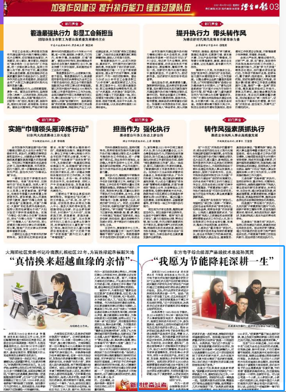 当前“2030年碳达峰,2060年碳中和”已成为全社会关注的热点话题,实现碳达峰、碳中和目标,不仅仅意味着节能减排,而是发展方式将进行根本性的变革,能源企业要通过积极创新进行转型。孙英英说:“这对我个人的研究方向和领域是比较合题的,我非常愿意将这个课题做大做实做深,我们上海拓鹏实业有限公司的企业愿景就是‘珍爱环境,节约资源’跟国家战略相吻合,在这里能给我提供一个研究、创新的平台。可以说公司是一个小家,从小家到大家,小家一起行动起来以后,相信中国这个大家的能效利用环境会有很大的提升的。所以说,让我在这个领域深耕一辈子的话,我是非常愿意的。”